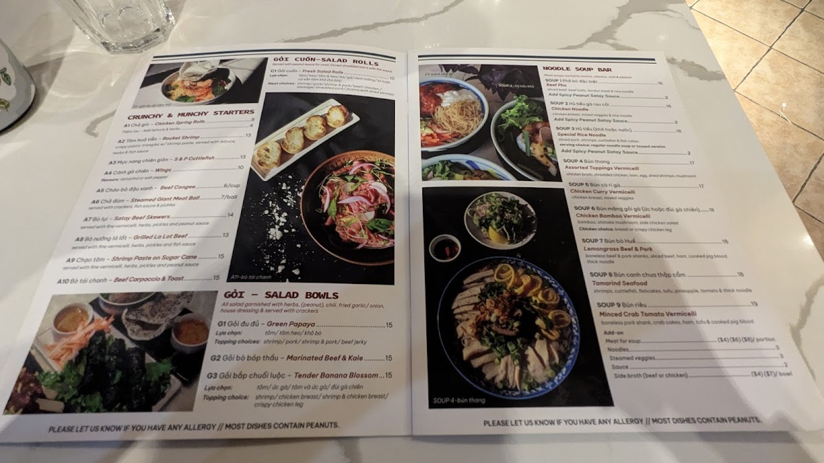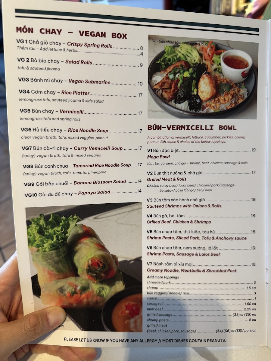 The true stars of the menu, however, are the rice platters. The Grilled Pork, Shredded Pork & Meat Loaf (Cơm Thịt Nướng) at CA$21.60 is an excellent choice for those looking for a hearty meal that’s bursting with flavor. Alternatively, seafood lovers will revel in the Seafoods Fried Rice (Cơm Chiên Đồ Biển), also priced at CA$21.60, where each grain of rice is coated with a delightful richness from the perfectly cooked seafood.