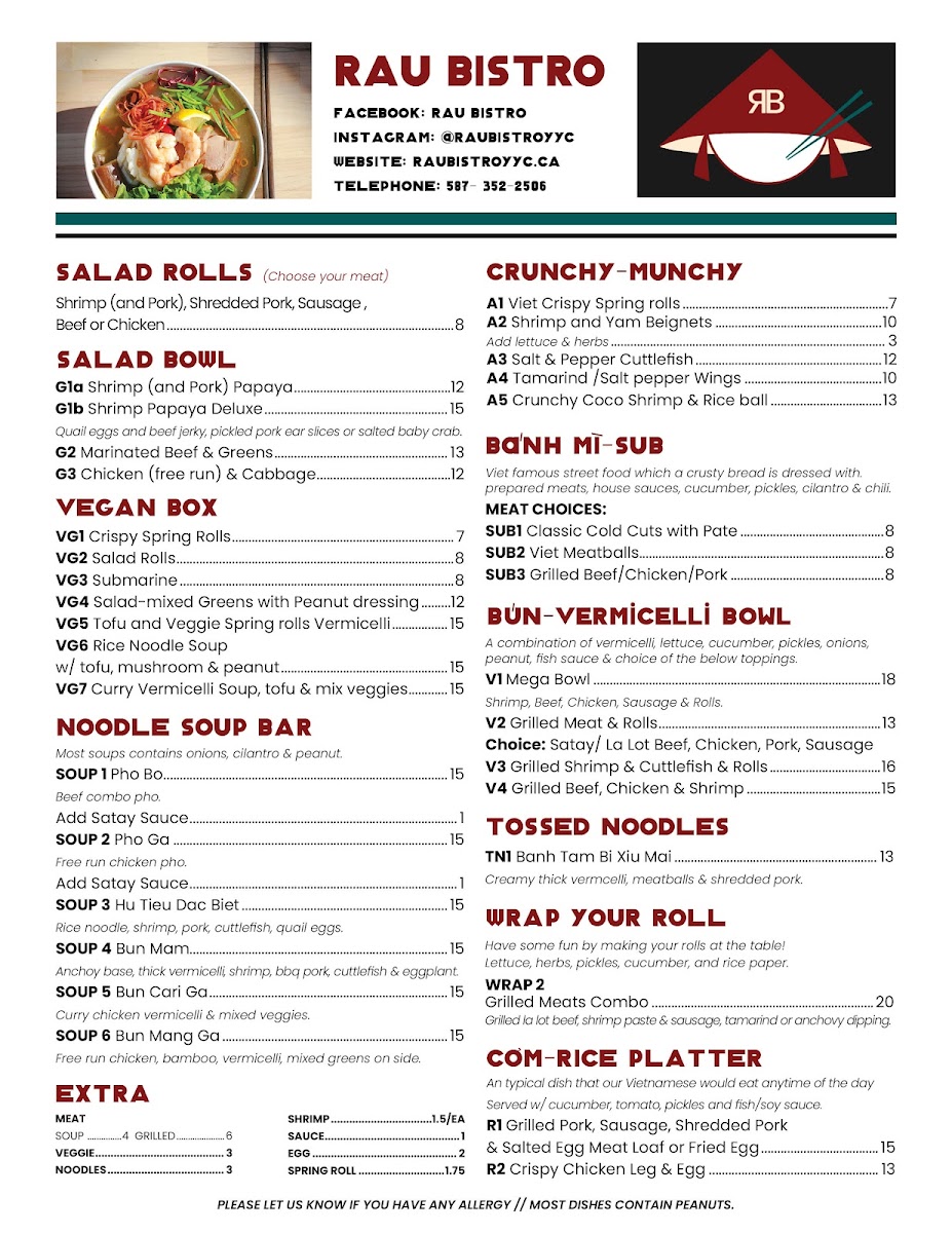 Welcome to Rau Bistro, a vibrant culinary gem tucked away at 806 Centre St N in Calgary, AB. Specializing in authentic Vietnamese street food, this restaurant offers a delightful escape into the rich and flavorful world of Vietnamese cuisine. As soon as you step inside, you'll be enveloped by an inviting atmosphere, characterized by clean lines, warm colors, and a friendly staff ready to make your dining experience exceptional.